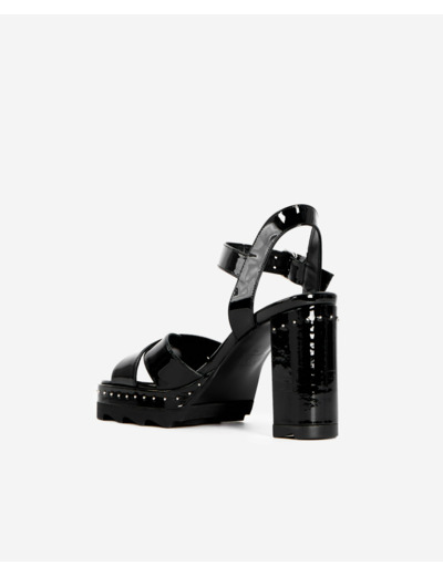 Affirmez votre style avec ces sandales à talons en cuir verni noir, une alliance parfaite entre élégance et modernité. Chaque pas devient une déclaration de sophistication.