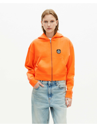Conçu pour la femme moderne, ce sweatshirt se distingue par sa coupe droite et son col classique, offrant une silhouette nette et sophistiquée. La fermeture zippée facilite l’enfilage tandis que la broderie blason The Kooples sur la poitrine apporte une touche d’authenticité et de caractère. La capuche et les poches kangourou renforcent son côté pratique et décontracté, parfait pour vos journées actives ou vos moments de détente.