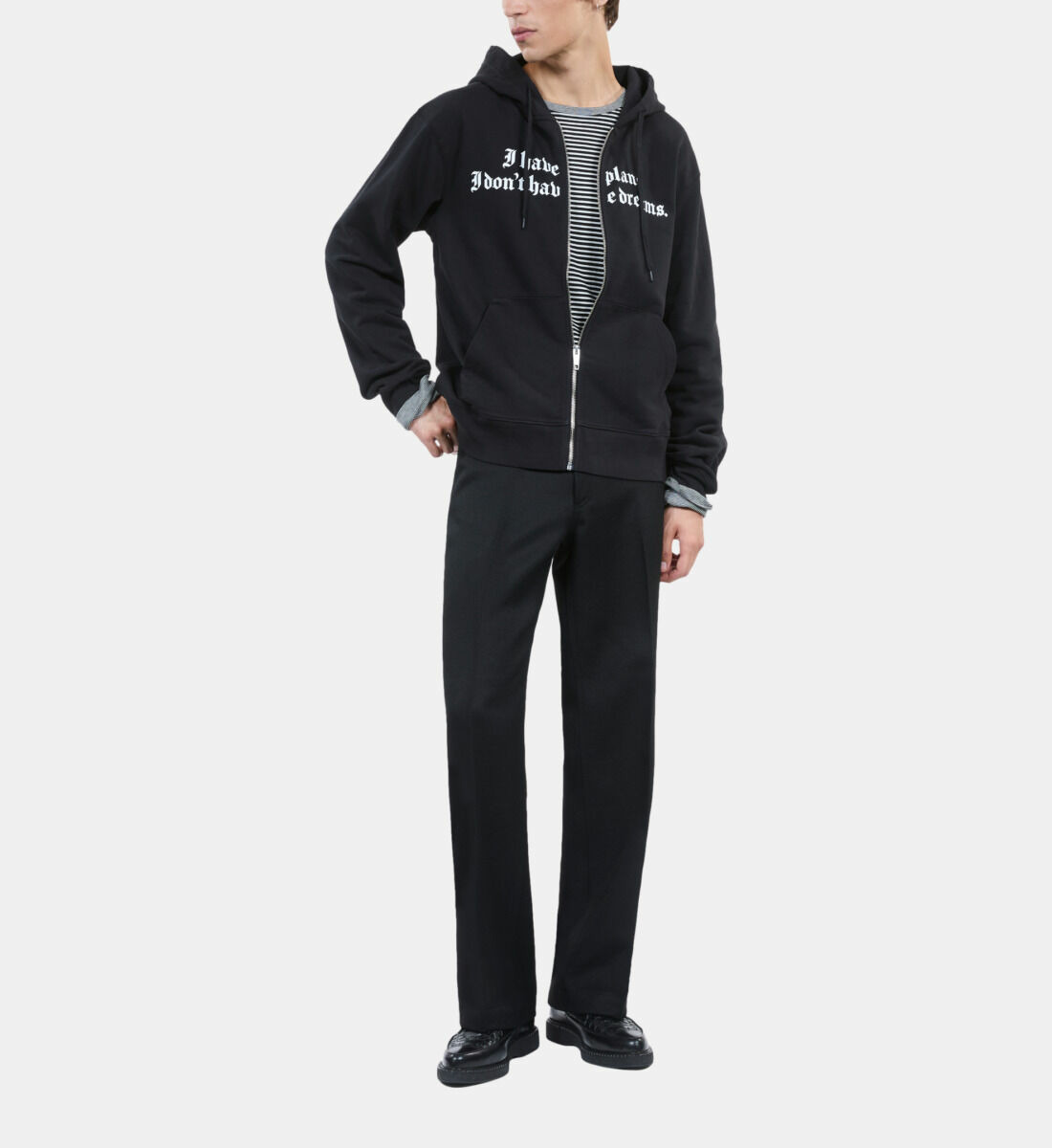 Conçu pour l’homme contemporain, ce sweatshirt se distingue par sa sérigraphie subtile qui apporte une touche graphique sans excès. Sa coupe ajustée épouse la silhouette tout en garantissant une liberté de mouvement idéale au quotidien. Le noir profond s’associe facilement à toutes vos tenues, du jean brut au pantalon plus habillé.