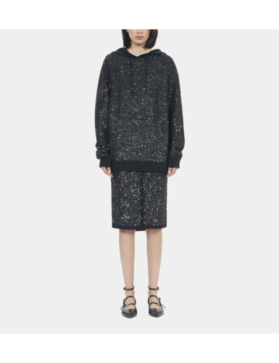 Illuminez votre silhouette avec ce sweatshirt à sequins en maille noire, une pièce qui allie audace et élégance. Parfait pour sublimer vos looks en toute saison, il incarne le chic urbain revisité.