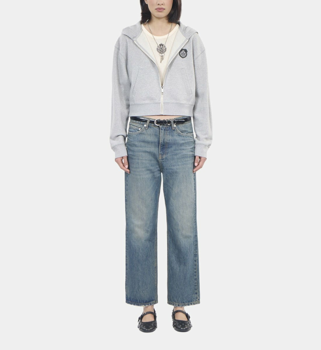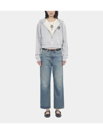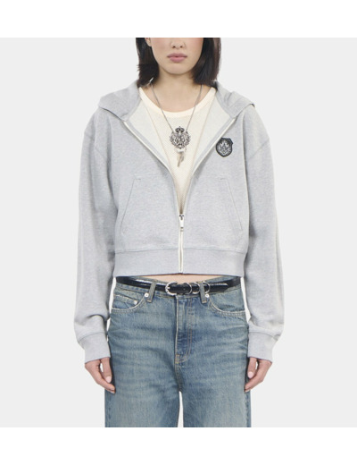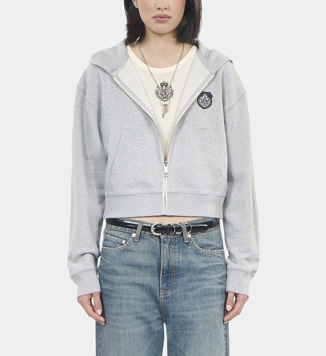 Adoptez l’élégance décontractée avec le sweatshirt Blazon à capuche gris, une pièce incontournable signée The Kooples. Conçu pour sublimer votre style tout en offrant un confort optimal, il s’impose comme un essentiel du dressing féminin.