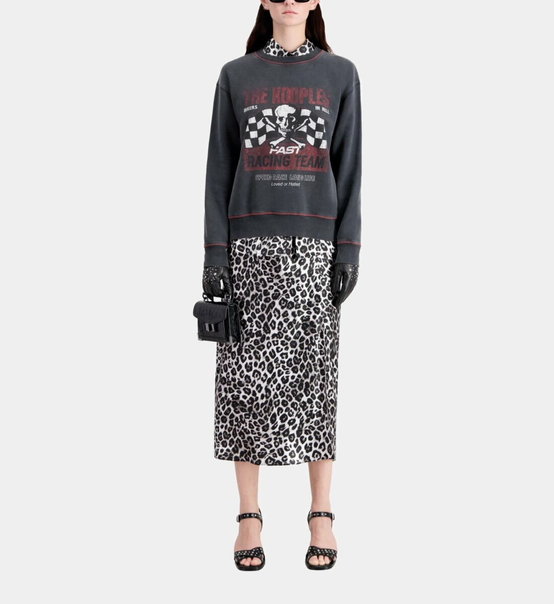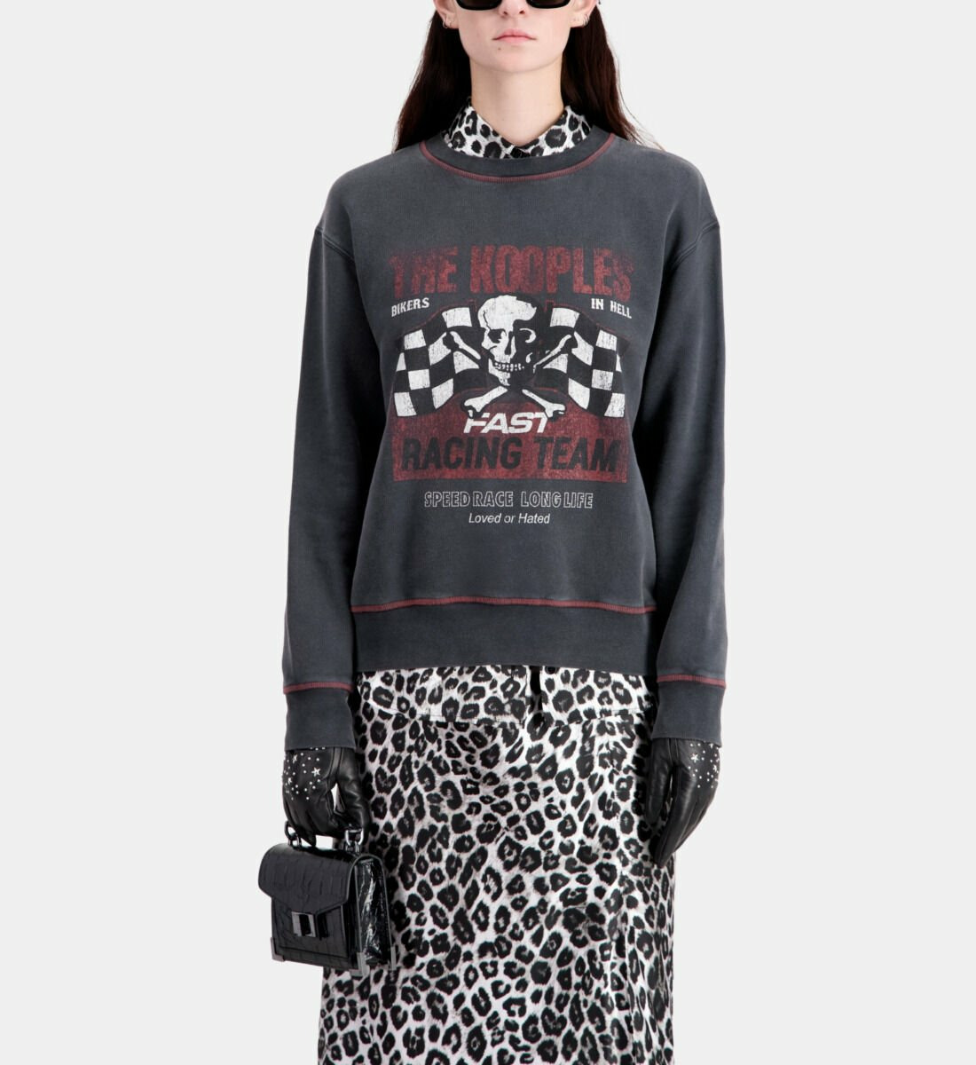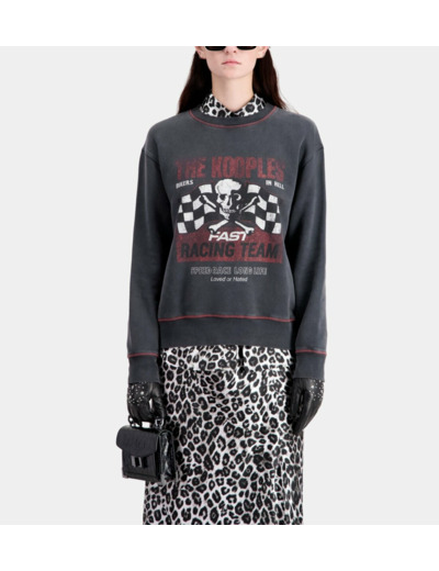 Affirmez votre style avec ce sweatshirt noir signé The Kooples, sublimé par une sérigraphie Racing Skull audacieuse. Une pièce incontournable pour une allure à la fois moderne et décontractée.