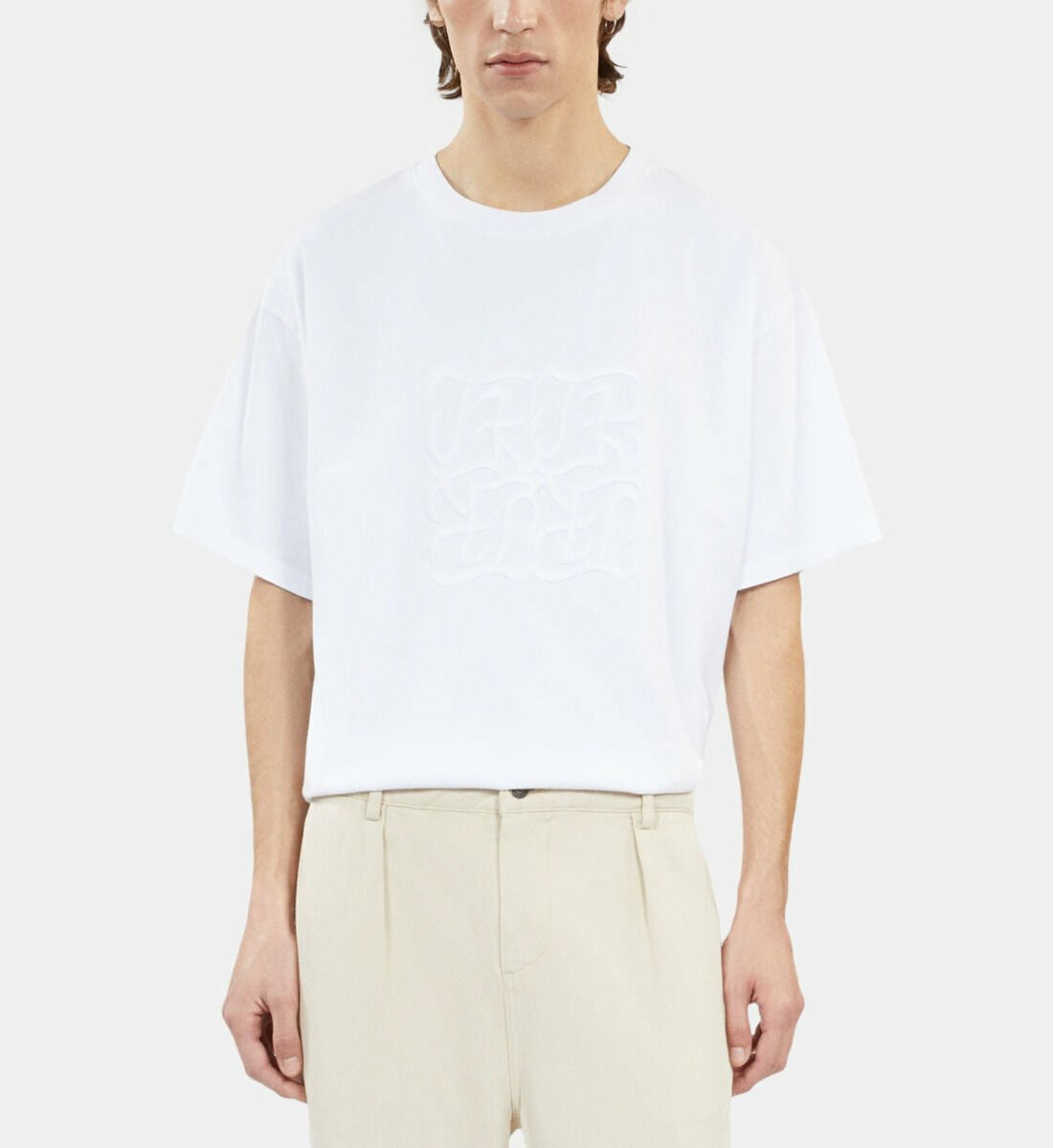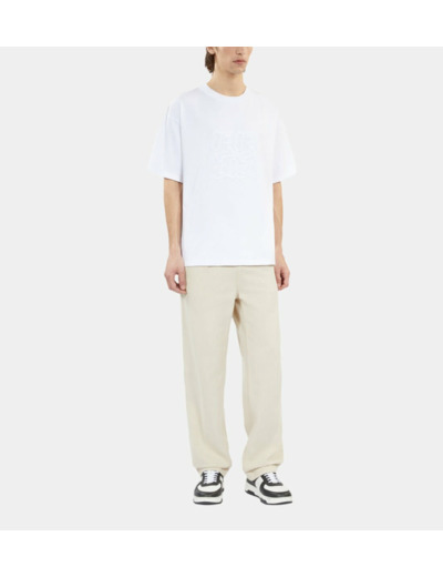 Affirmez votre style avec ce T-shirt blanc orné d’une broderie distinctive, une pièce essentielle pour un look moderne et épuré. La simplicité du col rond et des manches courtes se marie parfaitement à la finesse du détail brodé, pour une allure à la fois décontractée et soignée.