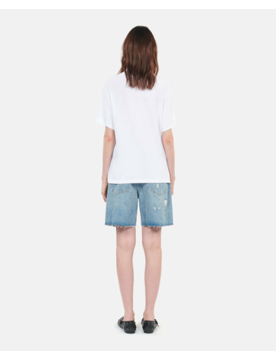 Confectionné dans un mélange unique de coton délavé et modal, ce T-shirt offre une douceur incomparable et une tenue impeccable au fil du temps. La sérigraphie avant apporte une touche graphique subtile, révélant une personnalité affirmée sans effort. Les manches courtes et la coupe droite garantissent un confort optimal tout au long de la journée, pour un look à la fois simple et impactant.