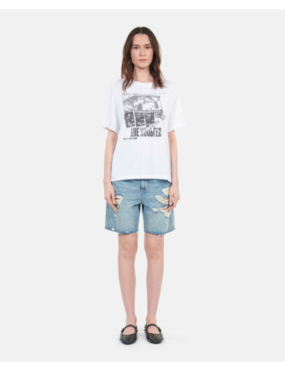 Affirmez votre style avec ce T-shirt blanc sérigraphié Eternal Life, un essentiel signé The Kooples qui allie modernité et élégance décontractée. Sa coupe droite et son col rond s’adaptent parfaitement à toutes vos tenues, du jean casual à la jupe sophistiquée.