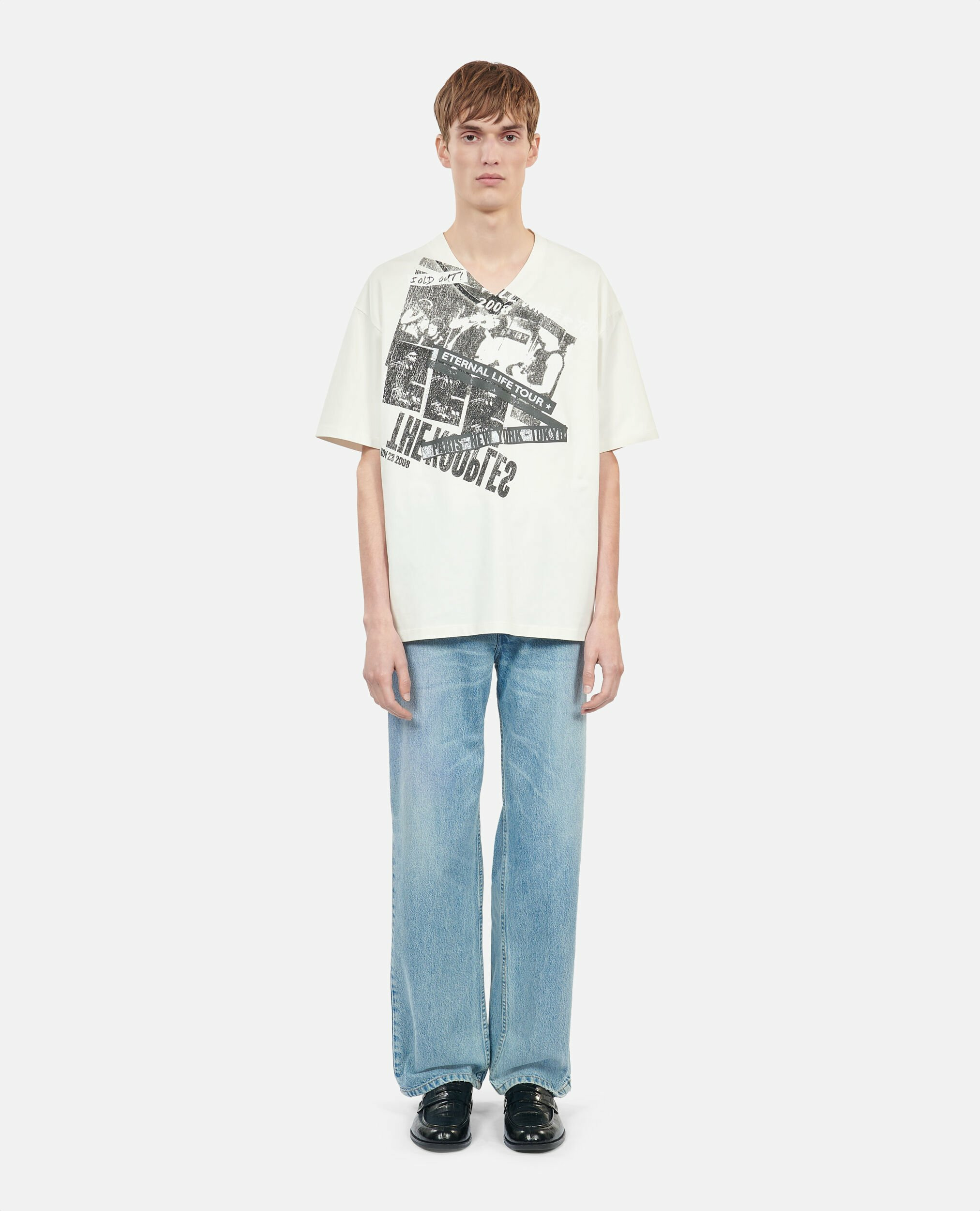 Confectionné en coton délavé, ce T-shirt à coupe large offre une silhouette fluide et un toucher doux, parfait pour vos journées actives. Son col en V et ses manches courtes renforcent son allure casual tout en apportant une touche d’élégance subtile. La sérigraphie frontale Eternal Life ajoute un détail graphique qui capte le regard sans en faire trop.