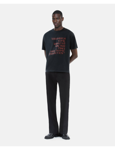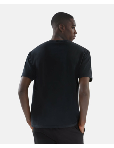 Composition 100% coton délavé. Entretien facile pour préserver la qualité du tissu et de l’imprimé. Coupe droite, col rond, manches courtes. Sérigraphie effet tricot sur le devant.