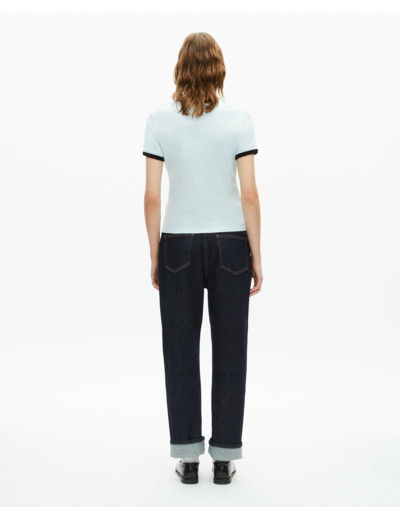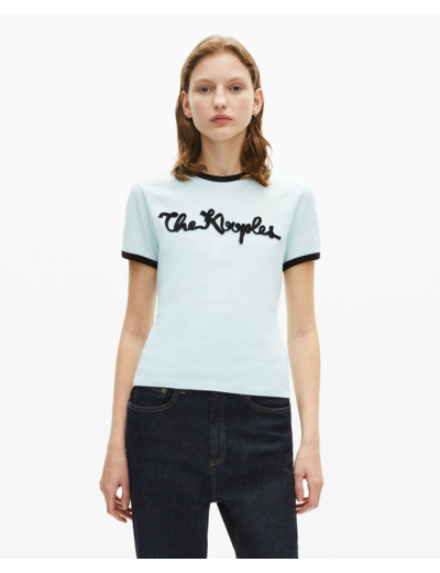 Conçu pour les femmes qui aiment mixer style et simplicité, ce T-shirt séduit par son col rond contrasté et ses manches courtes assorties, rehaussées d’une broderie ruban distinctive The Kooples. Léger et facile à associer, il s’intègre parfaitement à une garde-robe urbaine et contemporaine.