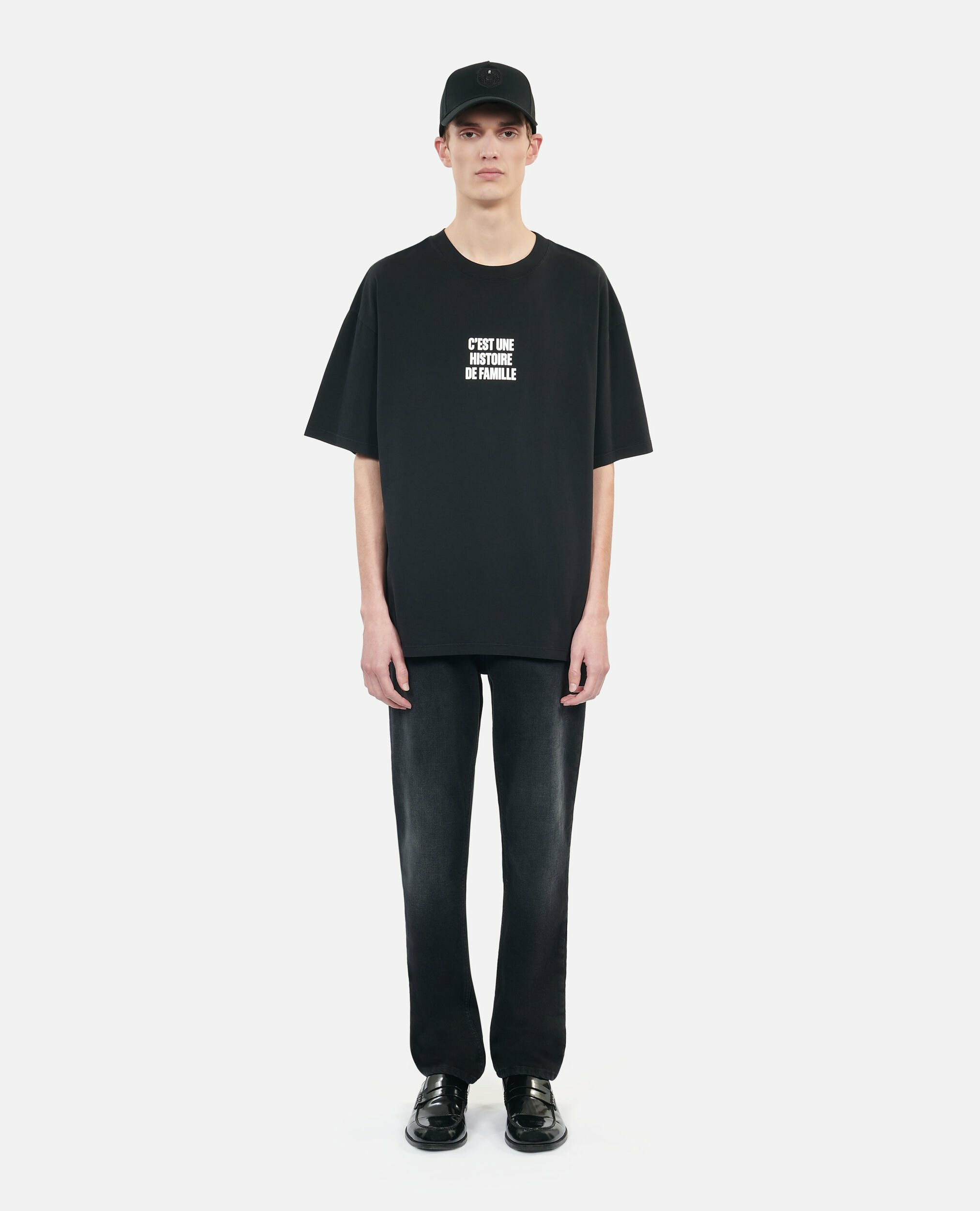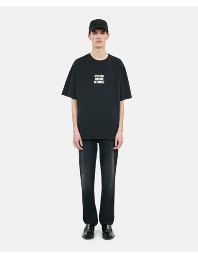 Confectionné en coton délavé, ce T-Shirt oversize offre une coupe ample qui épouse parfaitement les mouvements. Son col rond classique et ses manches courtes assurent un confort optimal tout au long de la journée. La sérigraphie avant apporte une touche graphique et contemporaine, symbole d’une histoire de famille revisitée avec modernité.