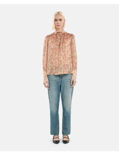 Sublimez votre allure avec ce top en soie imprimé fleuri signé The Kooples, une pièce qui allie élégance et légèreté. Sa coupe ample et son col montant apportent une touche contemporaine à un imprimé floral délicat.