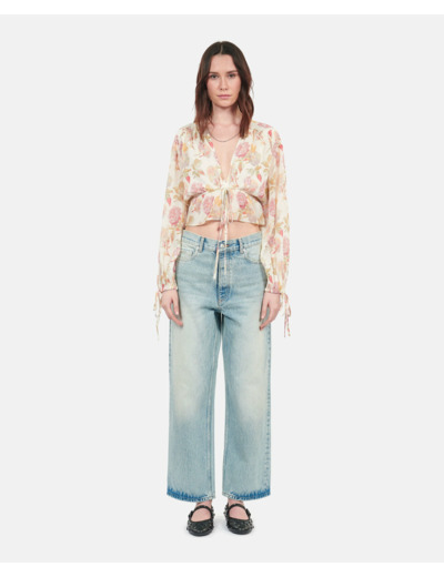 Sublimez votre allure avec ce top en soie signé The Kooples, où élégance et audace se rencontrent dans un imprimé floral vibrant. Les volants délicats et le laçage raffiné apportent une touche féminine et contemporaine à votre garde-robe.