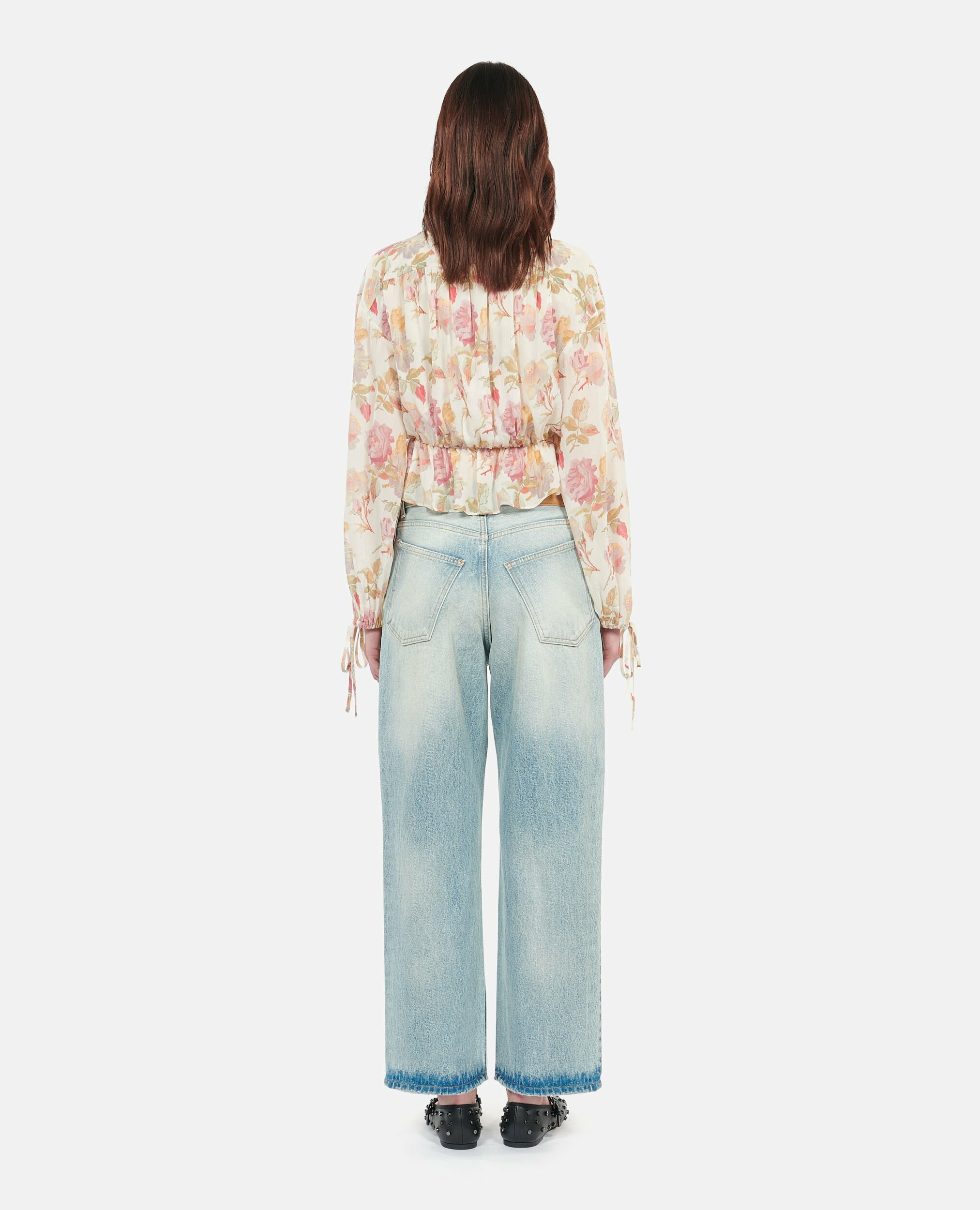 Ce top vous garantit un confort exceptionnel tout en rehaussant votre silhouette. L’imprimé roses multicolore dynamise vos tenues, tandis que la coupe ample et les volants apportent une élégance naturelle, idéale pour un look chic et décontracté.