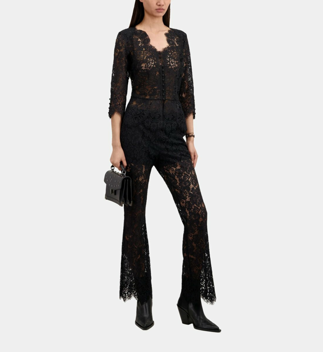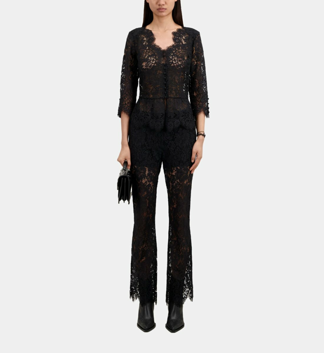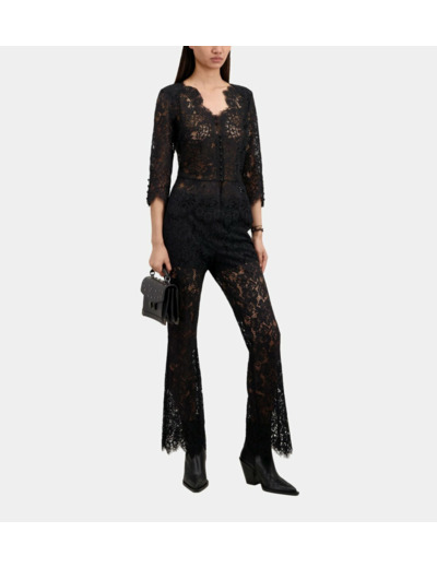 Sublimez votre silhouette avec ce top noir en dentelle, alliant élégance et modernité. Sa coupe raffinée et ses détails délicats en font une pièce incontournable de votre dressing.