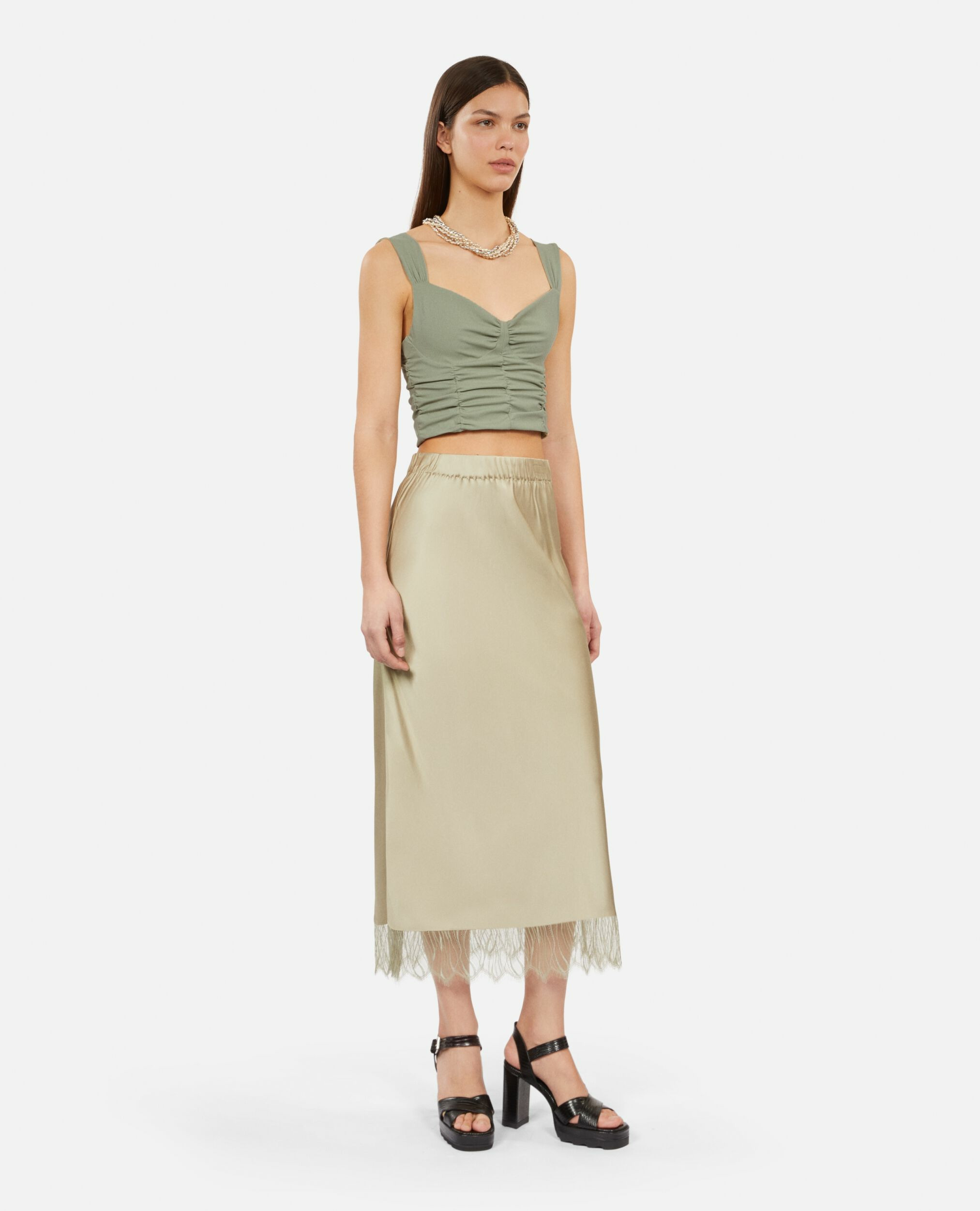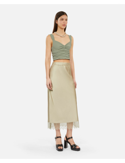 Sublimez votre silhouette avec ce top vert clair qui allie élégance et modernité. Sa coupe courte et ses fronces délicates apportent une touche de féminité affirmée à votre look.