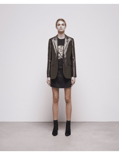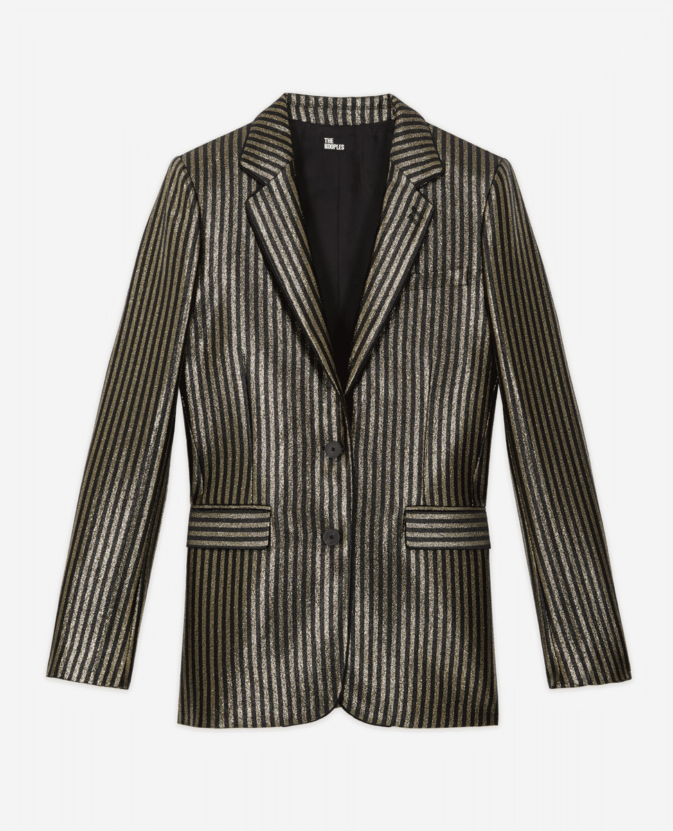 Affirmez votre style avec cette veste de costume noire et dorée signée The Kooples, un blazer qui allie élégance et modernité. Ses rayures subtiles et son col cranté apportent une touche sophistiquée à toutes vos tenues.