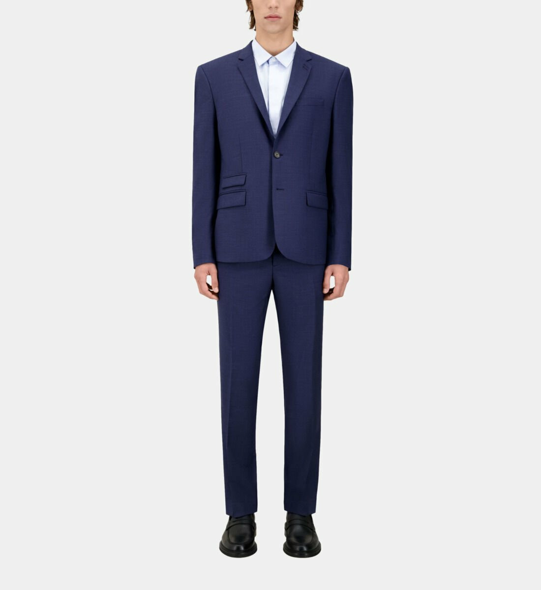 Fabriquée dans un tissu italien de qualité, cette veste présente une coupe ajustée, un col cranté, des manches longues avec boutons aux poignets, une fermeture à deux boutons, une poche passepoilée à la poitrine et deux poches passepoilées à rabat sur le devant.