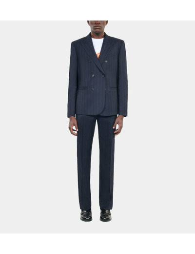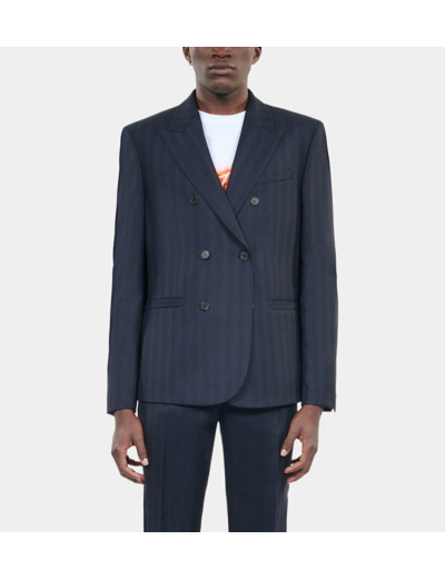 Affirmez votre style avec cette veste de costume à rayures bleues, une pièce qui allie élégance classique et modernité. Parfaite pour imposer une allure sophistiquée en toute occasion.