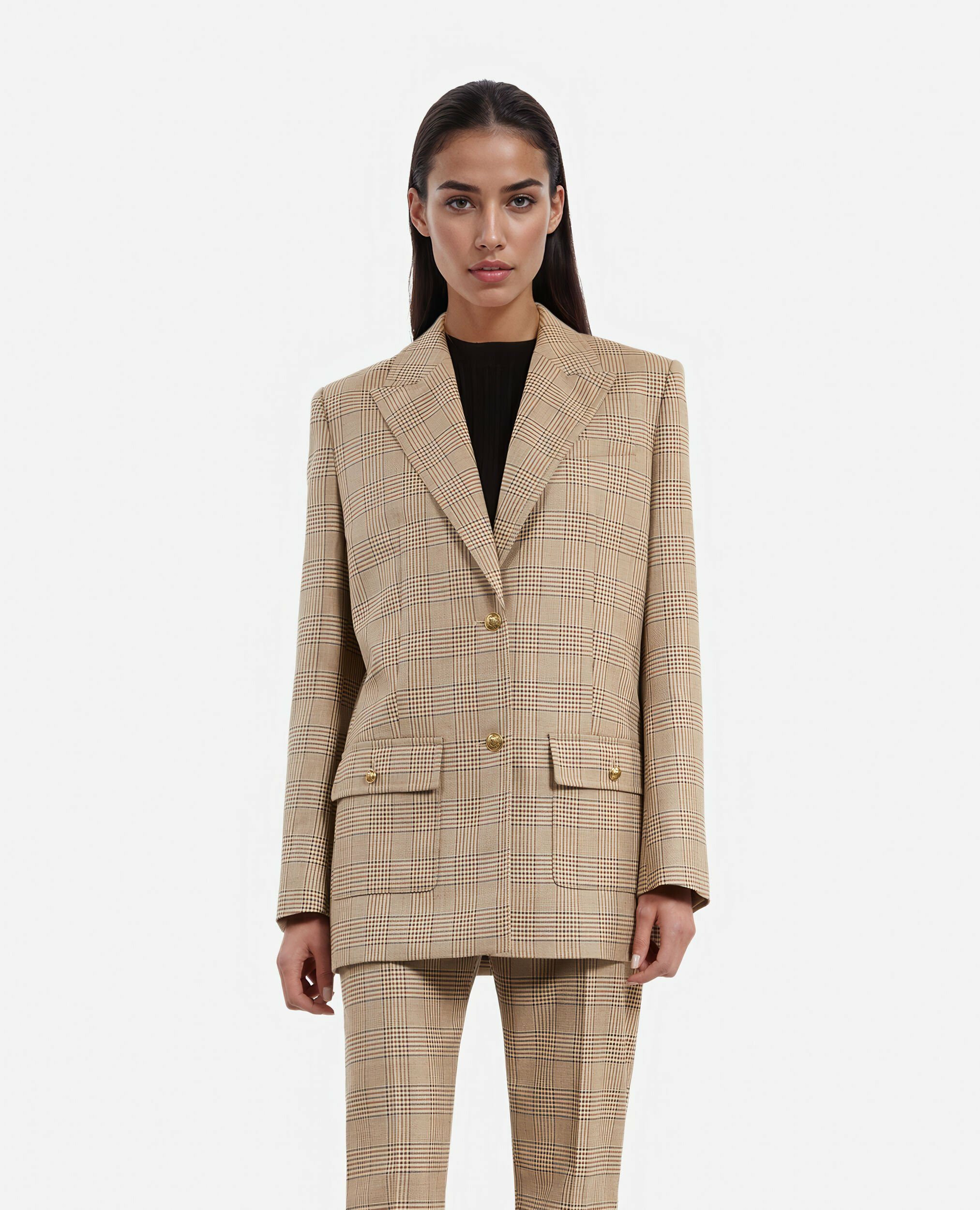 Conçue pour la femme contemporaine, cette veste droite séduit par ses revers en pointe et ses manches longues finement travaillées. Les boutons héritage et les poches passepoilées à rabat apportent une touche d’authenticité et de sophistication, idéale pour un look professionnel ou une tenue chic décontractée. Associez-la facilement à un pantalon coordonné pour un ensemble harmonieux et stylé.