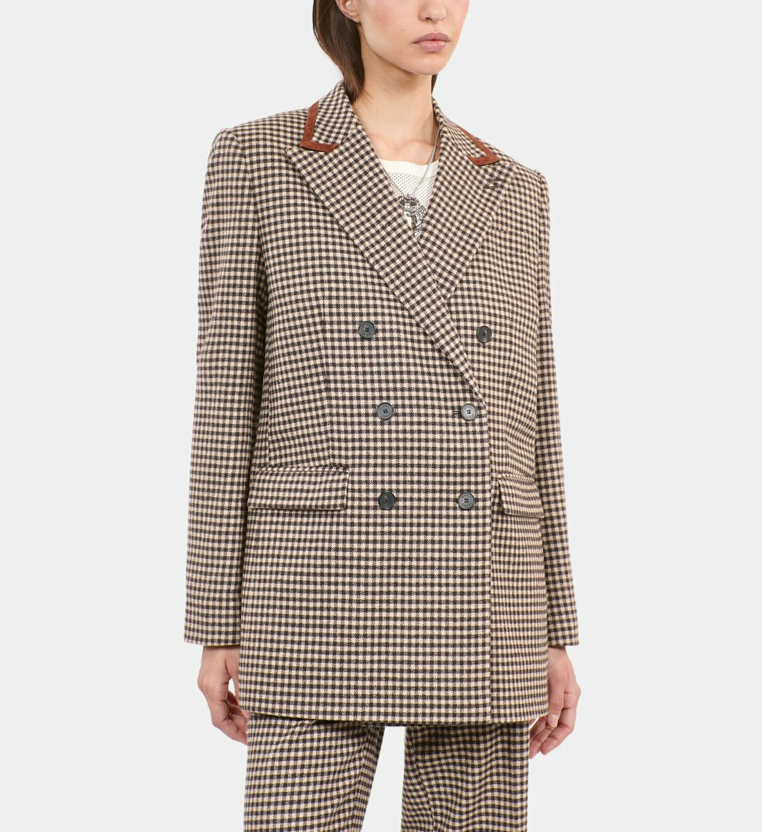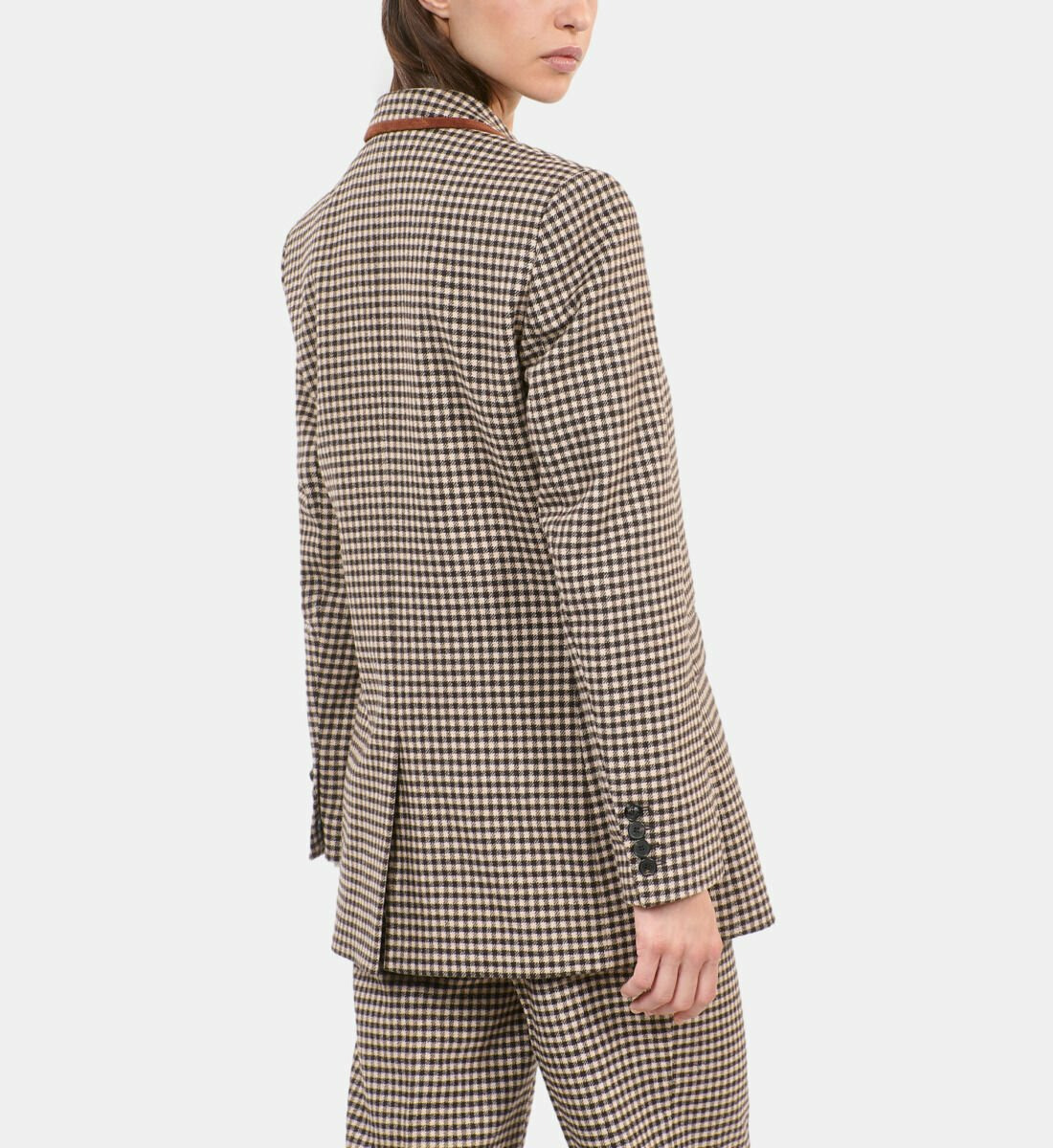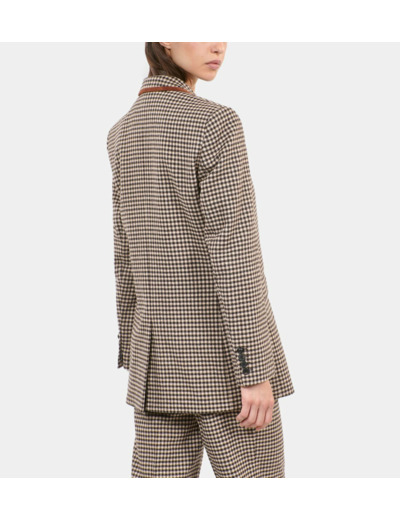 Conçue pour les femmes exigeantes, cette veste mêle la chaleur de la laine à la robustesse du cuir de veau sur l’empiècement, offrant une silhouette structurée et raffinée. Le motif Vichy apporte une touche graphique qui dynamise votre look sans jamais sacrifier la sophistication. Sa doublure en viscose et acetate garantit un confort optimal tout au long de la journée.