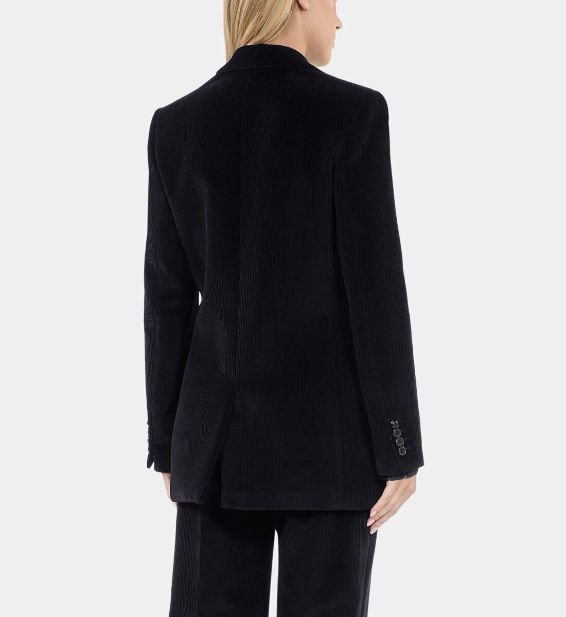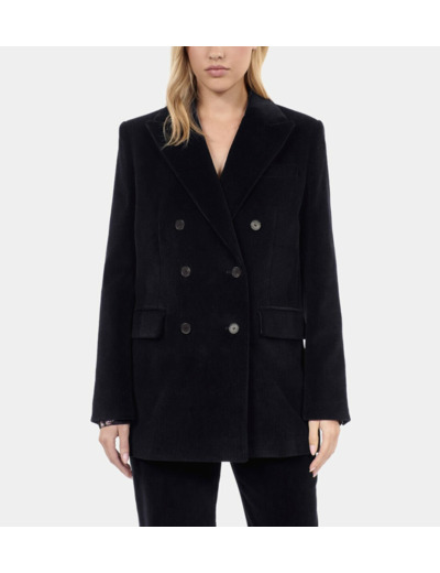 Affirmez votre élégance avec cette veste tailleur en velours côtelé noir, un essentiel pour sublimer votre silhouette avec modernité et raffinement. Un classique revisité qui allie confort et style pour toutes vos occasions.