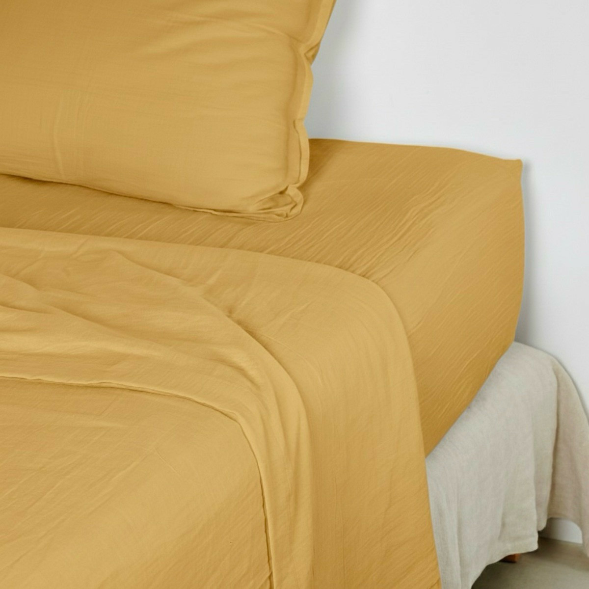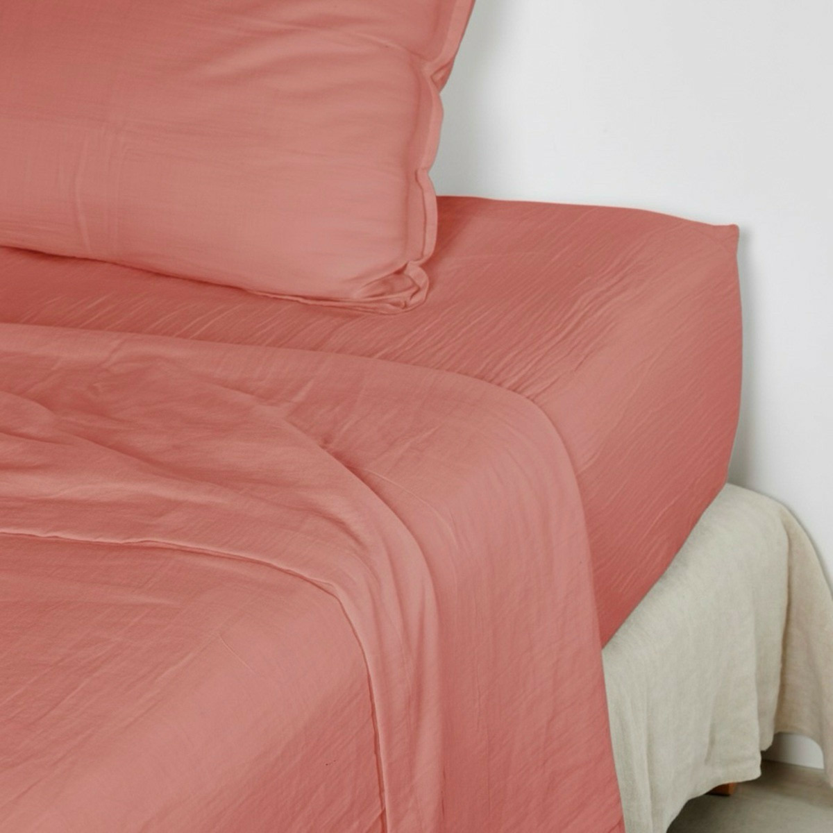 Découvrez notre nouveau drap plat en gaze de coton, conçu pour offrir un confort incomparable et une touche d'élégance naturelle à votre lit.