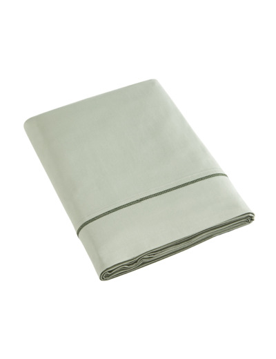 Ce drap plat se décline en 8 coloris : blanc avec bourdon bleu marine, anthracite avec bourdon or, lilas avec bourdon rose pâle, lin avec bourdon marron, or avec bourdon noir, perle avec bourdon anthracite, sauge avec bourdon vert sapin, bleu nuit avec bourdon blanc