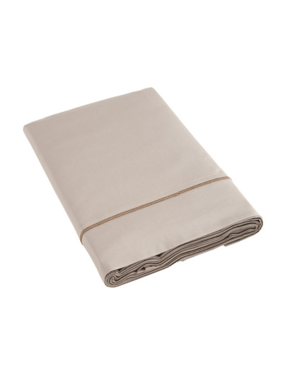 Le drap plat Opium est en 100% satin de coton longues fibres 120 fils/cm². Un joli bourdon brodé lui apporte une touche raffinée.