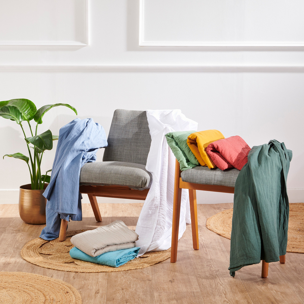 Style très aérien avec cette nouvelle collection de linge de lit en gaze de coton doublée.