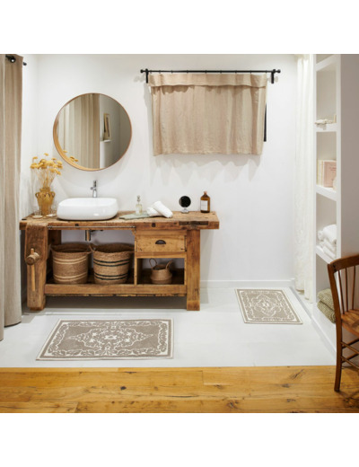 Ce tapis de bain Tradition des Vosges au tissage jacquard en relief est 100% coton.