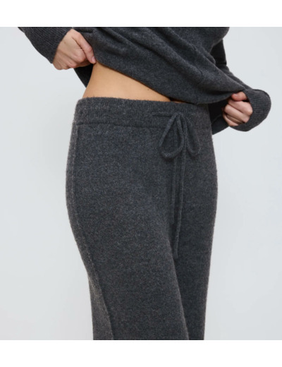 These full-length trousers offer a flattering fit with a wide-leg design and adjustable waistband. The decorative side seam and ribbed hems add a contemporary touch. Crafted from a soft, warm, fully fashioned knit made from 55% recycled polyester, this style is GRS certified.