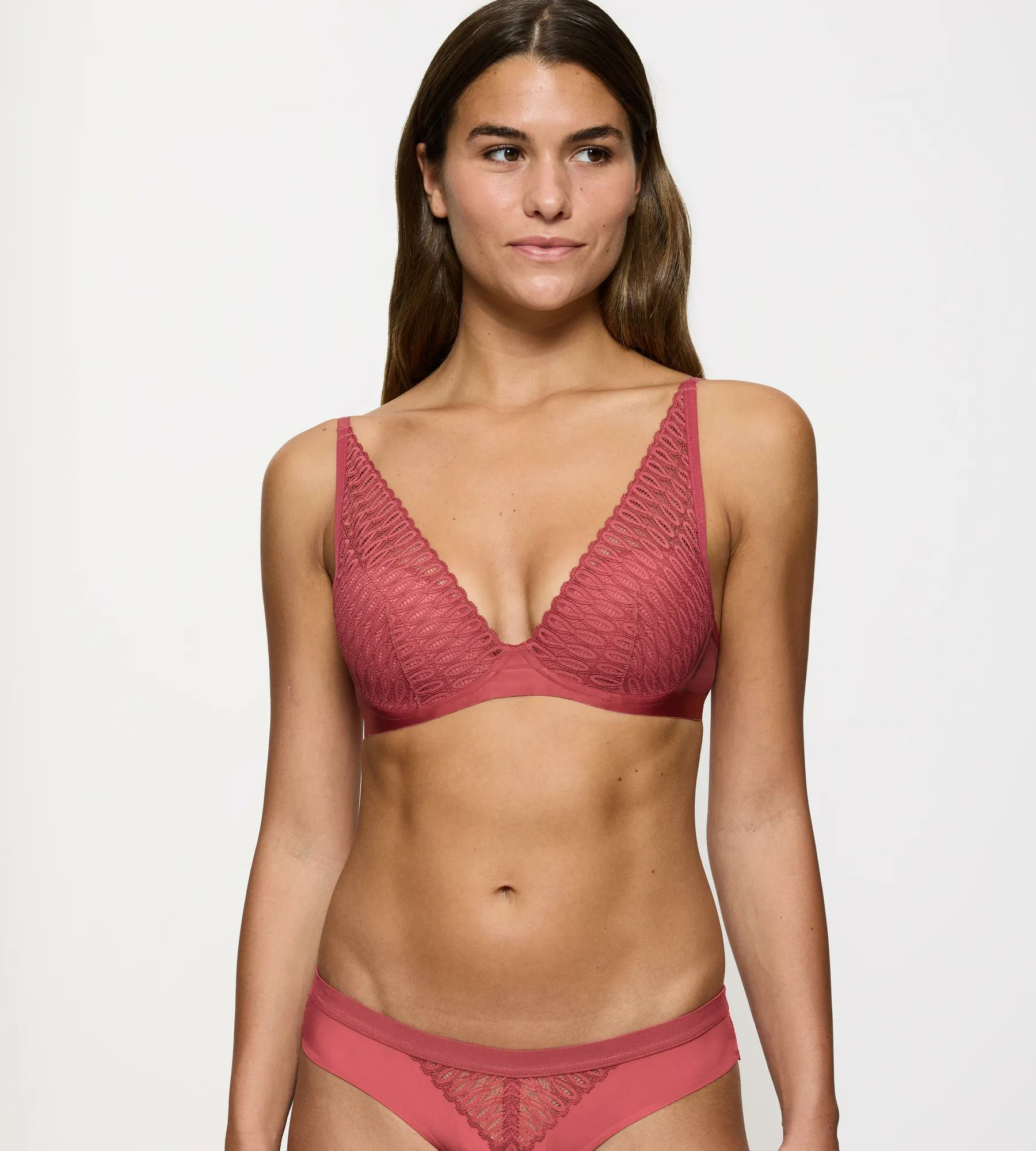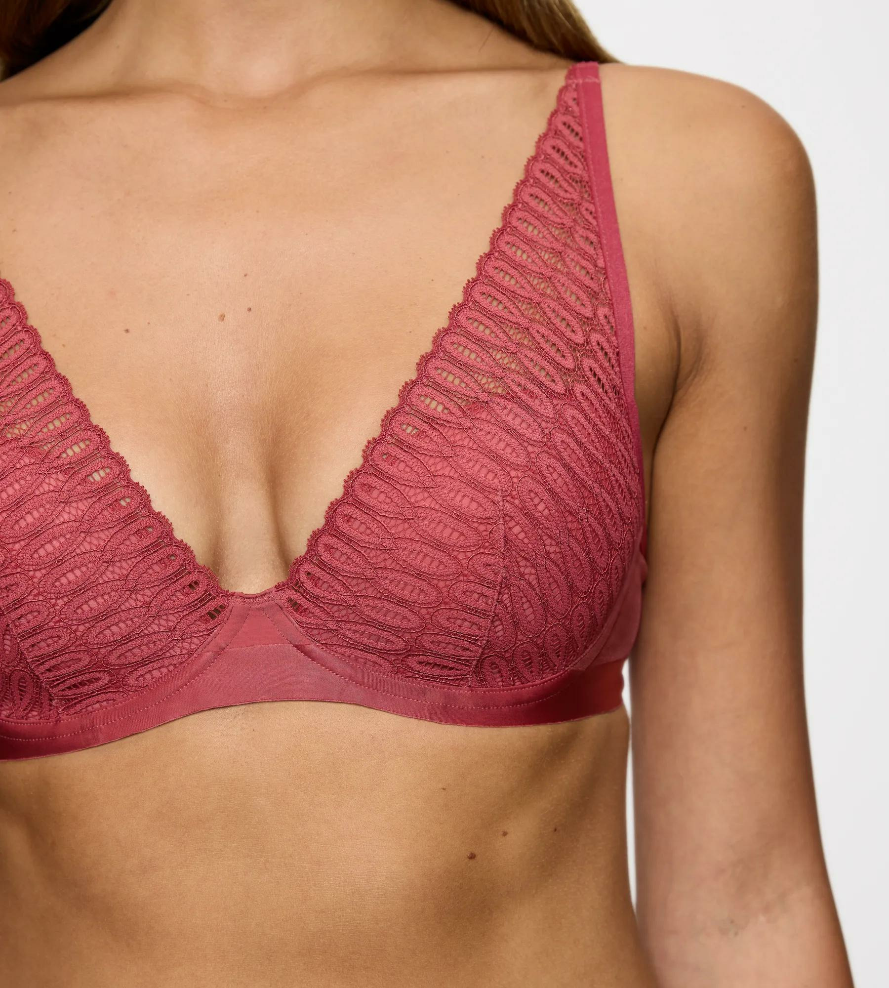 This seductive deep plunging bra from the Style Aura Spotlight by Triumph offers delicate, patterned lace and maximum comfort.