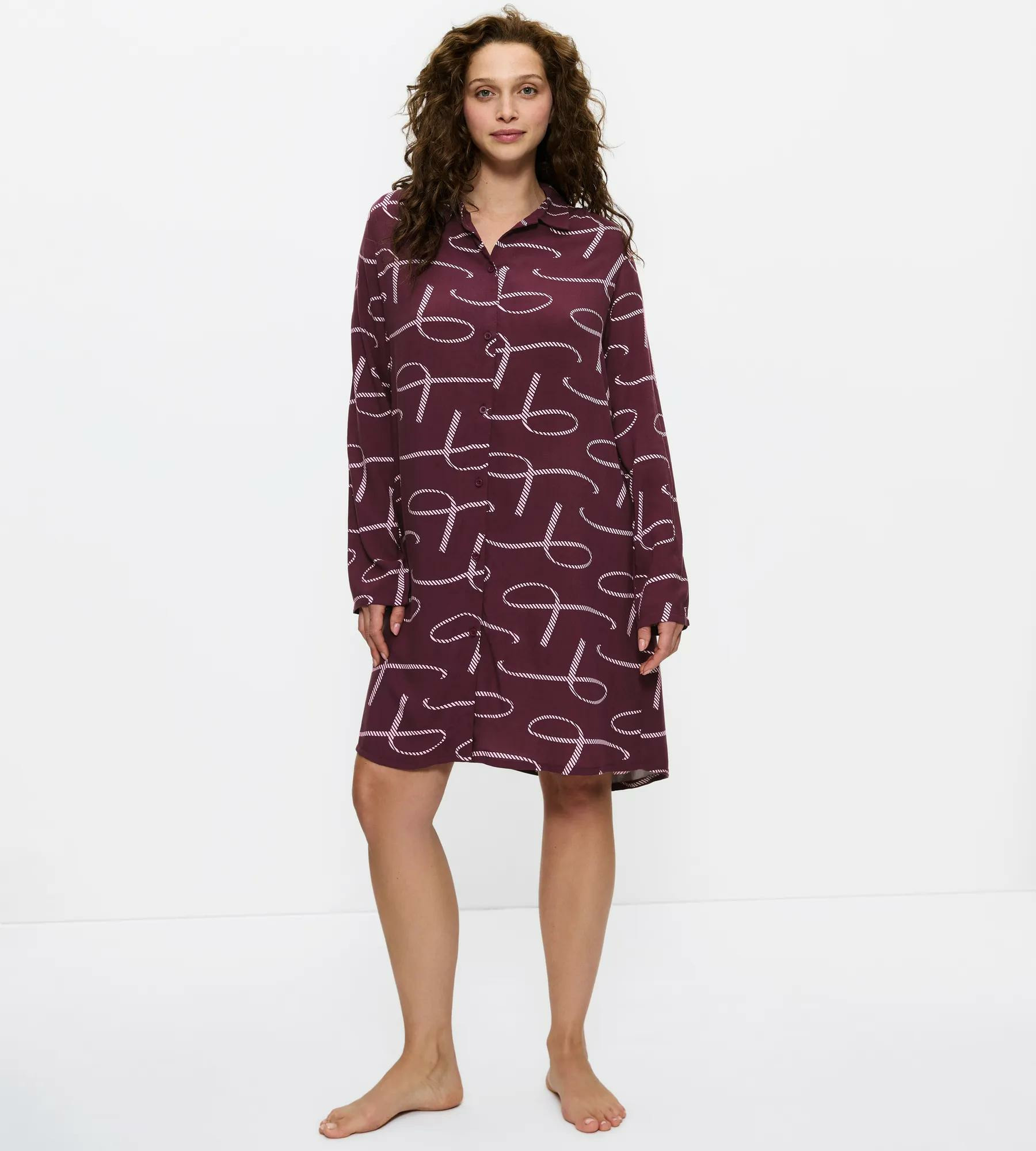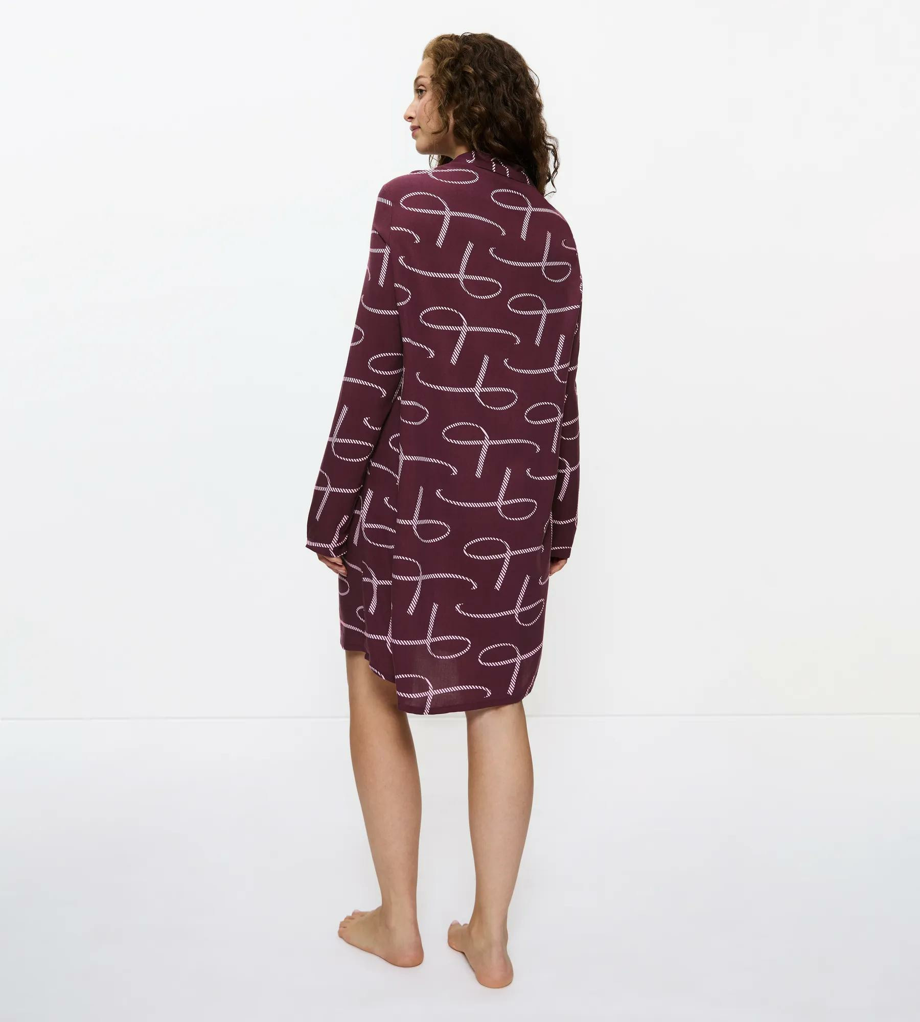 Long-sleeved boyfriend nightdress with a relaxed fit, classic collar and button placket. Designed with soft, breathable fabric.