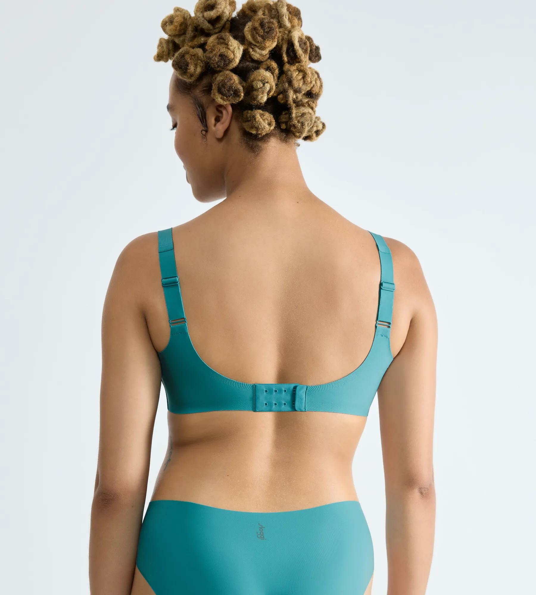 Love that ZERO feeling? Youll adore this new-look ZERO Feel Soft Bra offering seam-free, invisible comfort with strong support. Made from super-fine, GRS-certified recycled microfibre, it features removable cookies for an enhanced silhouette, with invisible technology in between cup layers providing additional support. Dot-bonded straps ensure a pinch-free fit.
