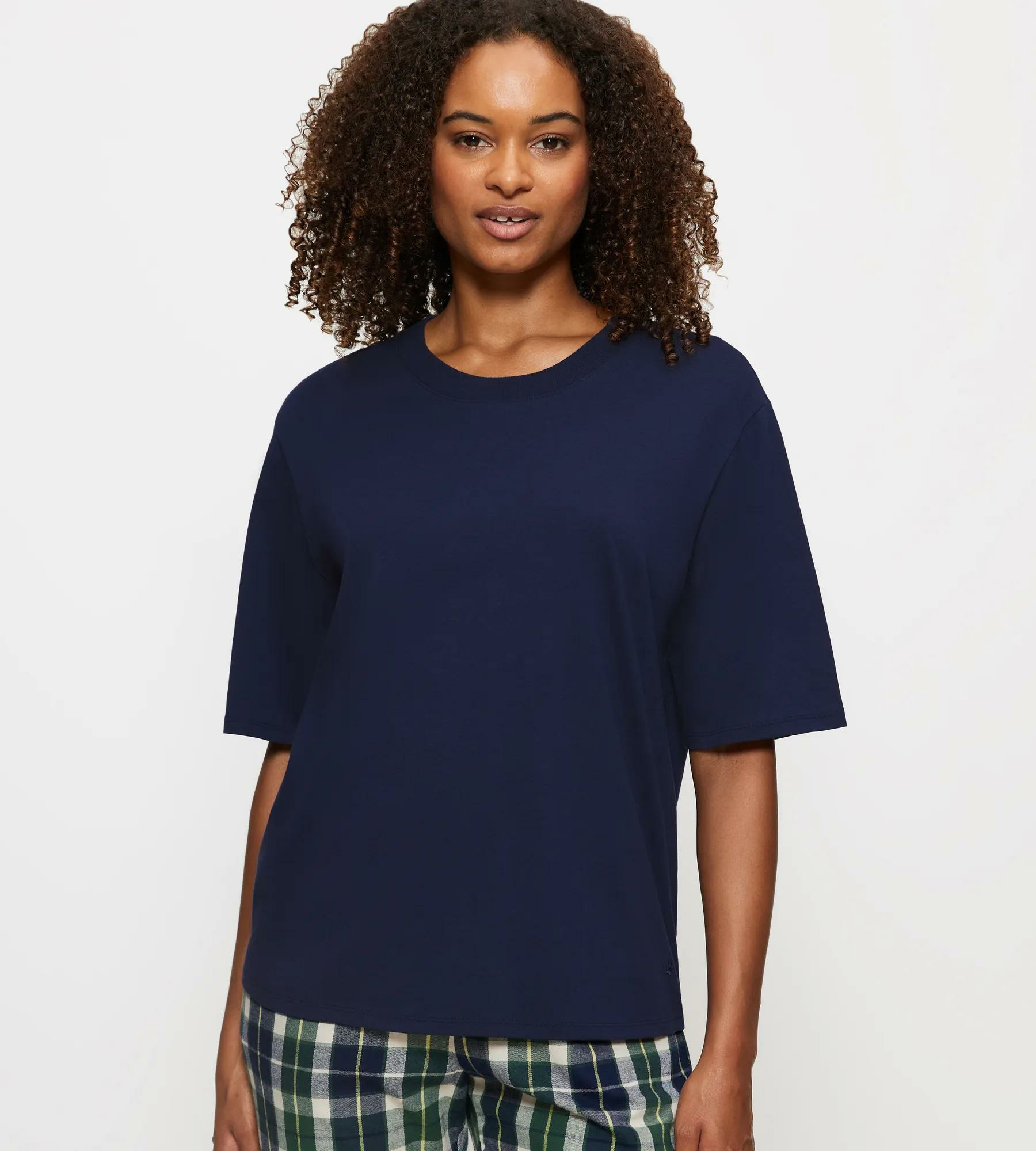 This top, featuring 3/4 sleeves, is a versatile essential suitable for any season. Its rib crew neck and relaxed boxy shape, bring a contemporary flair to this everyday piece. Crafted from 100% breathable GOTS certified organic cotton, this top ensures your comfort transitions from night to morning.