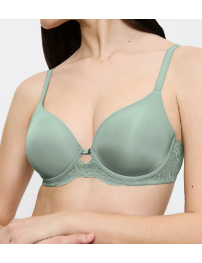 New wired, padded T-shirt bra imagined anew for summer based on the Amourette Spotlight WHP fit. Smooth moulded cups, invisible under clothes, help shape the perfect cleavage. Feminine and fine lace-lined back.