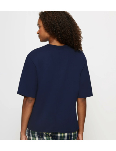 This top, featuring 3/4 sleeves, is a versatile essential suitable for any season. Its rib crew neck and relaxed boxy shape, bring a contemporary flair to this everyday piece. Crafted from 100% breathable GOTS certified organic cotton, this top ensures your comfort transitions from night to morning.