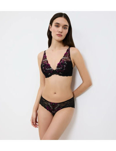 Sensual Spotlight is designed to offer delicacy to women who like to dress up. A fashionable yet seductive look, lightly styled, with contrasting multicoloured embroidery and subtle branding, mixed with feminine lace.