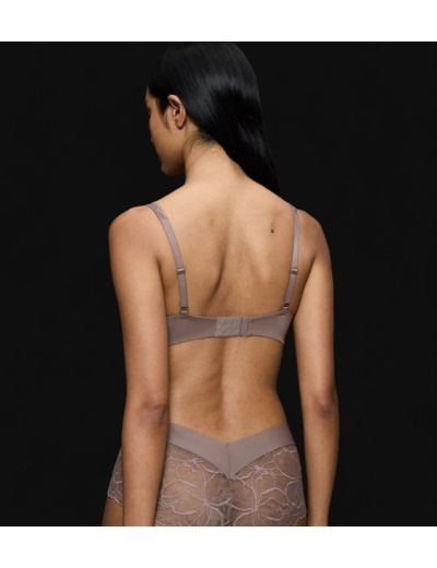 A wired padded balconette bra with flexible wire. The ideal choice for a women who seeks support and lightness. It is a bra women can trust but do not feel. Made with smooth lace and creamy soft micro fibre, both partially recycled
