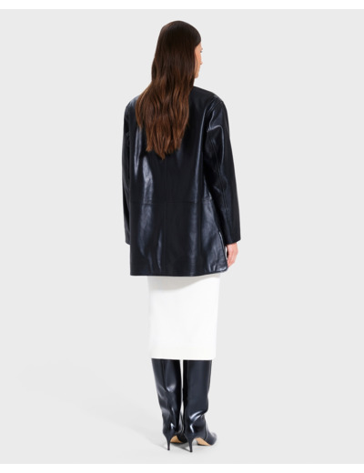 Confectionné en cuir 100% de qualité, ce blouson long séduit par sa coupe fluide qui épouse sans contrainte toutes les silhouettes. Son coloris noir profond et sa doublure en polyester assurent un confort optimal tout au long de la journée. Les manches longues et les deux poches plaquées ajoutent une touche pratique et stylée à cette veste versatile, idéale pour traverser les saisons avec assurance.