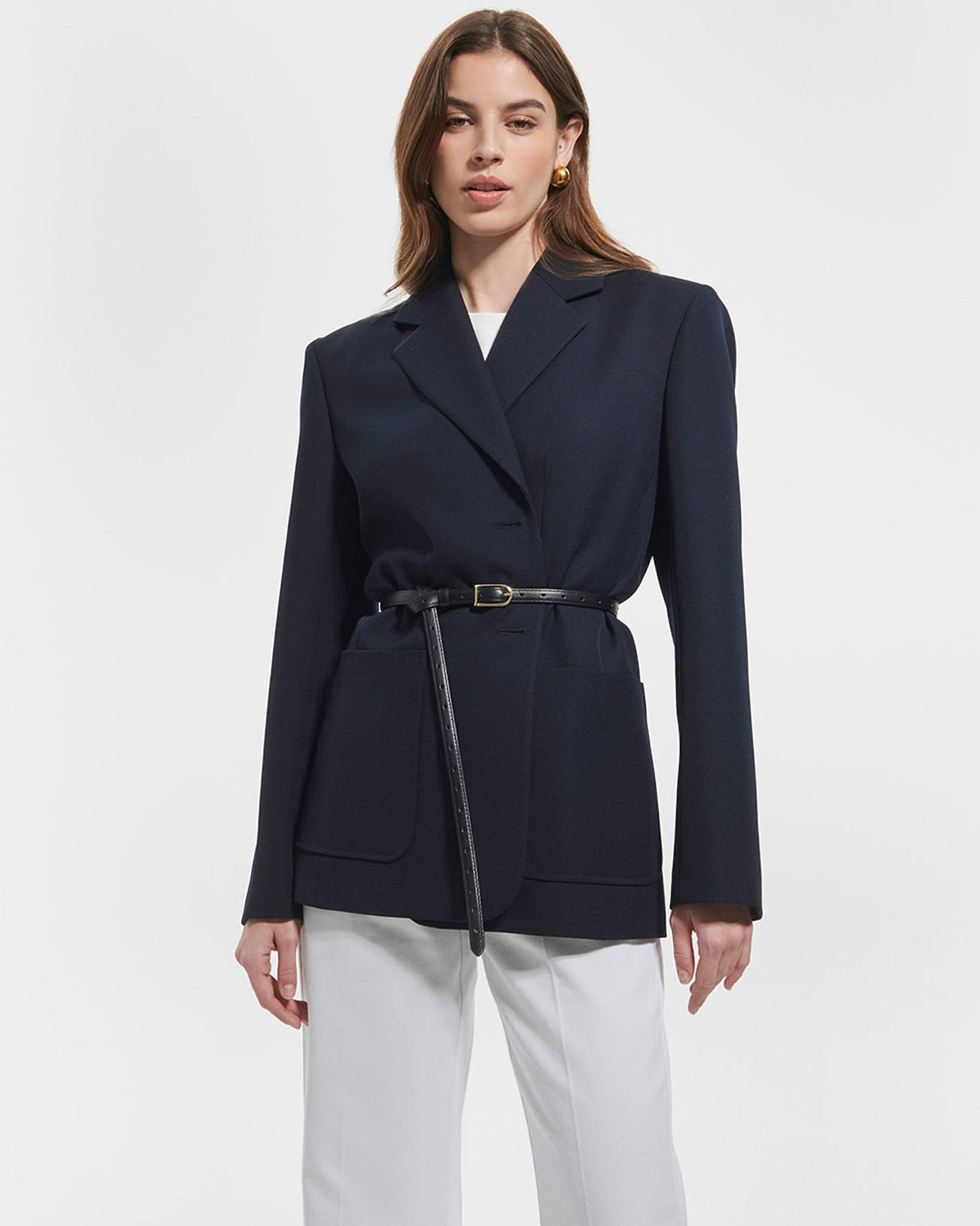 Conçue en cuir de veau véritable, cette ceinture allie finesse et robustesse pour un porté confortable et durable. Son design épuré s’adapte aussi bien à un blazer structuré qu’à une robe fluide, offrant une polyvalence idéale pour sublimer votre style au quotidien.