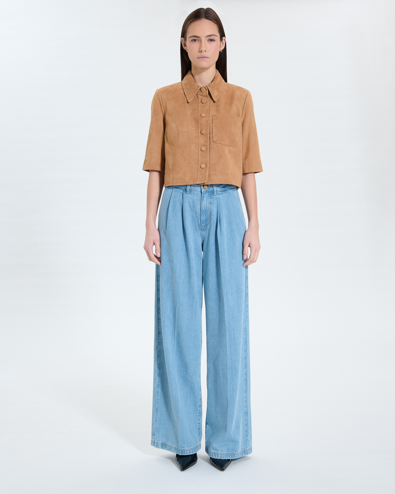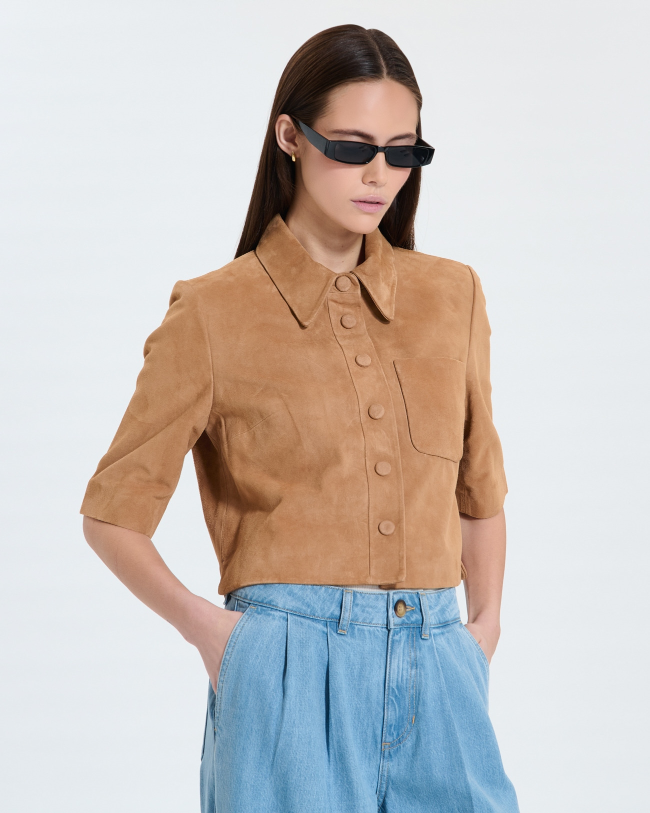 Sublimez votre allure avec la chemise courte CELINA, une pièce en daim de chèvre qui allie élégance et modernité. Son coloris beige et sa coupe droite s’adaptent à toutes vos envies, du look casual à la tenue sophistiquée.