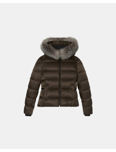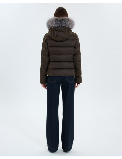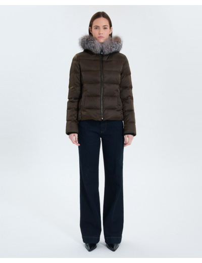 La doudoune Daly se distingue par sa coupe courte et son col montant qui protègent efficacement du froid tout en valorisant la silhouette. Le coloris kaki, sobre et tendance, s’adapte à toutes vos tenues, du casual au plus habillé. Le rembourrage en duvet de canard garantit une isolation optimale, tandis que la fourrure certifiée Sagafurs apporte une touche de luxe authentique.