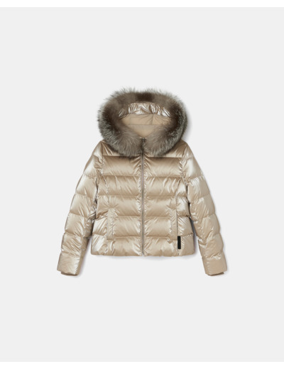 Composition : 100 % polyamide. Fourrure de renard certifiée Sagafurs. Rembourrage : 90 % duvet de canard, 10 % plume de canard. Entretien : ne pas laver, pas de blanchissage, séchage en machine interdit, ne pas repasser, nettoyage à sec délicat recommandé.