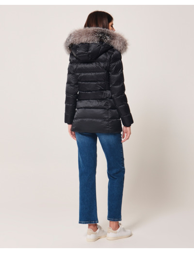 Composition : 60% polyester, 40% nylon. Fourrure de renard certifiée Sagafurs. Rembourrage : 90% duvet canard, 10% plume canard. Entretien : nettoyage à sec délicat uniquement. Ne pas laver, blanchir, sécher en machine ni repasser. Longueur : 79 cm. Capuche amovible.