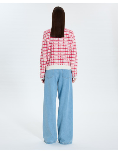 Affirmez votre style avec ce gilet façon tweed bicolore rouge écru, une pièce qui allie élégance et modernité. Sa finition dorée apporte une touche précieuse à une silhouette audacieuse et raffinée.