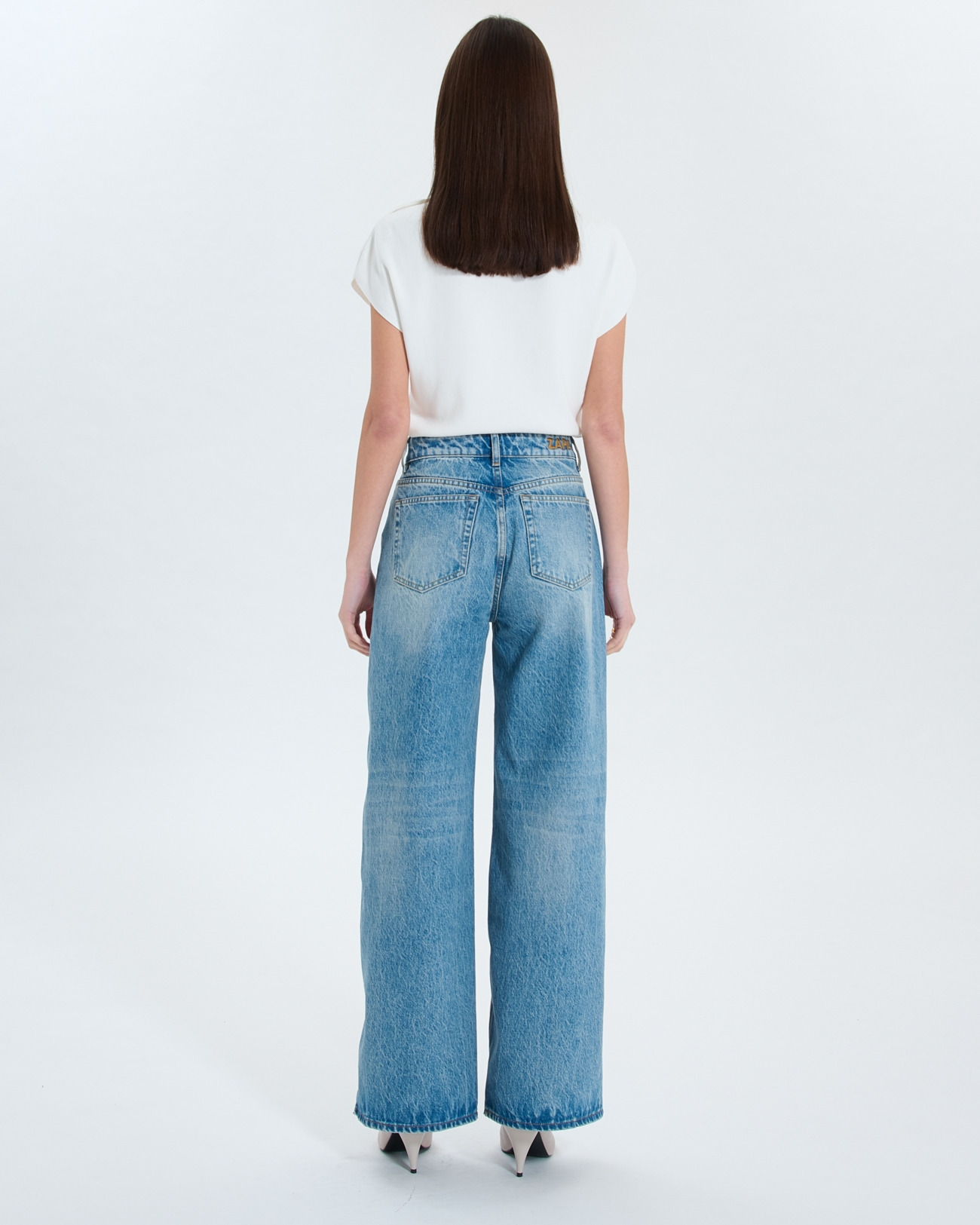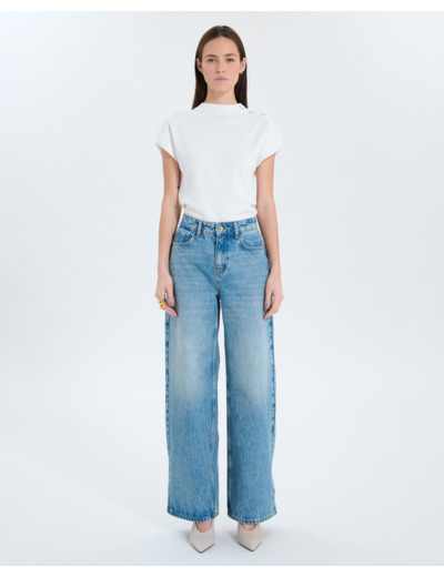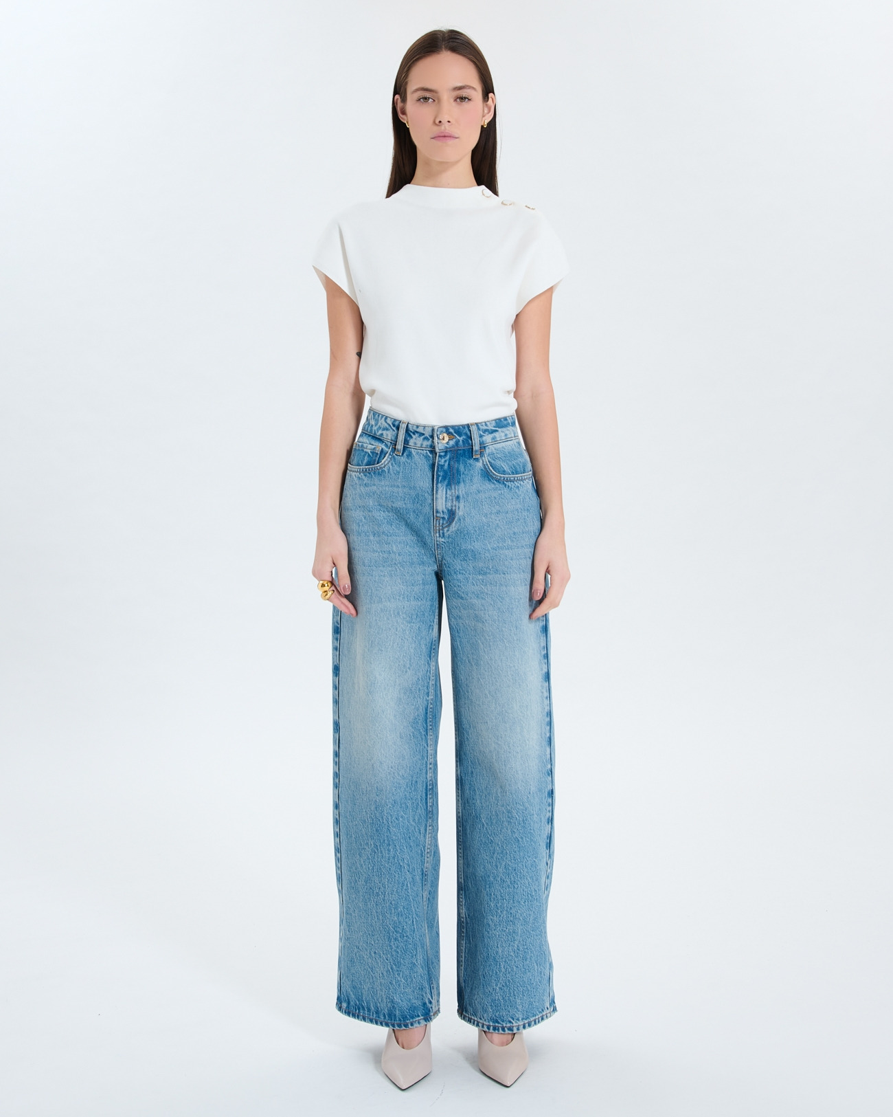 Adoptez l’allure moderne et décontractée avec le jean wide leg baby blue de Zapa. Sa coupe taille haute et son délavage marqué apportent une touche d’originalité à votre silhouette.