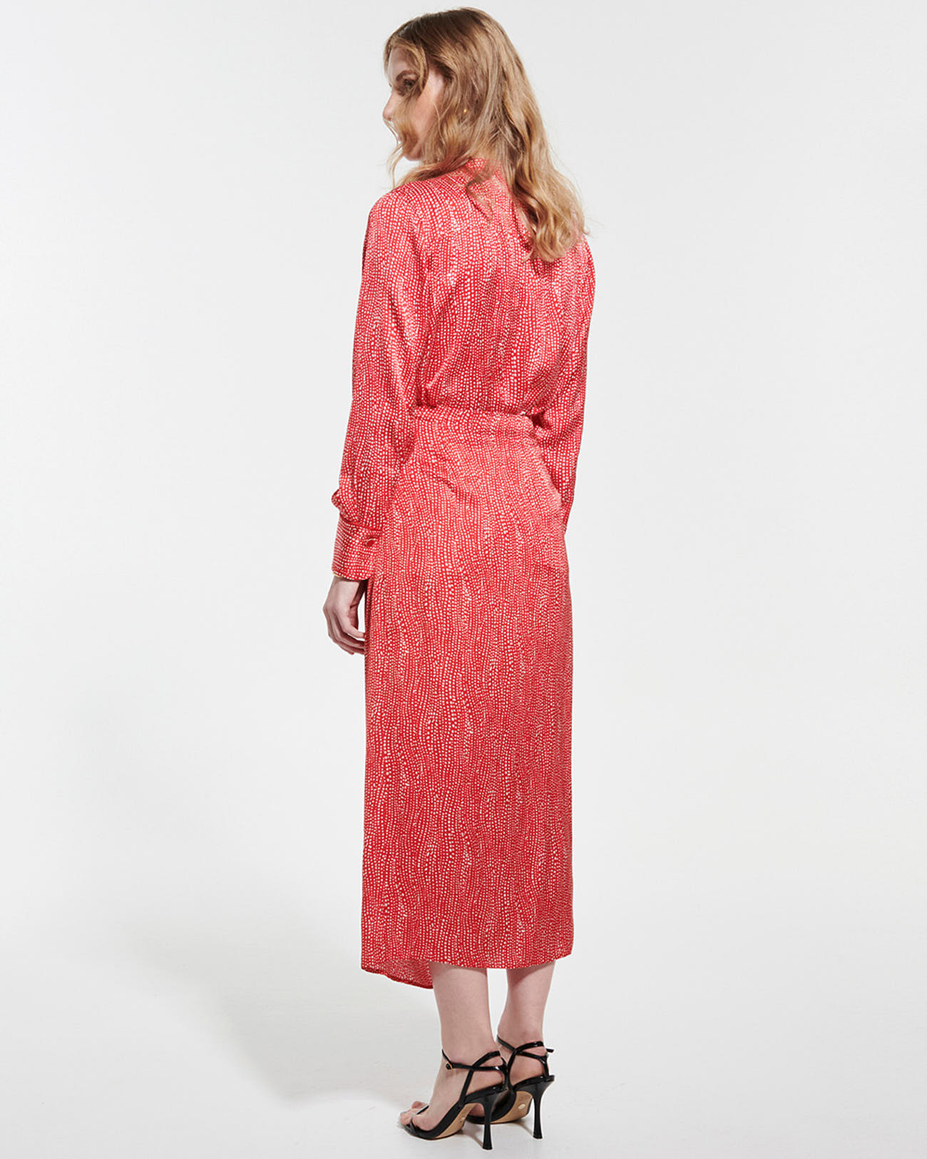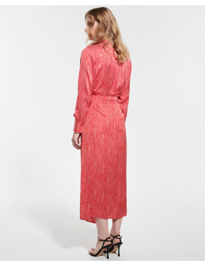 Confectionnée en viscose satinée, cette jupe longue offre un tombé léger et agréable au porter. Son imprimé gouttes d'eau rouge et blanc dynamise votre tenue tout en restant facile à associer. Sans doublure, elle garantit une sensation de légèreté idéale pour toutes vos sorties.
