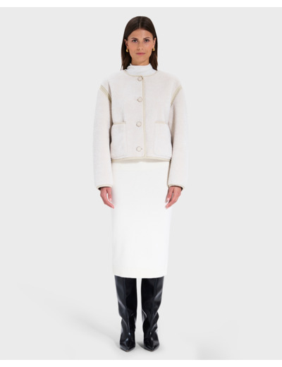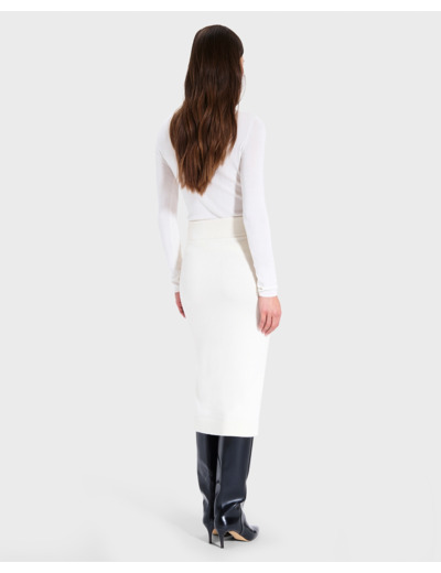 Sublimez votre allure avec la jupe Jelico écru, une pièce essentielle alliant élégance et confort. Sa coupe crayon mi-longue et sa taille haute sculptent la silhouette avec précision.