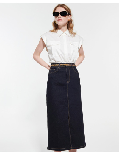Adoptez l’élégance décontractée avec la jupe Jude Brut en coton, un essentiel qui allie style et confort. Son denim brut et sa coupe midi s’adaptent à toutes vos envies, du bureau au week-end.
