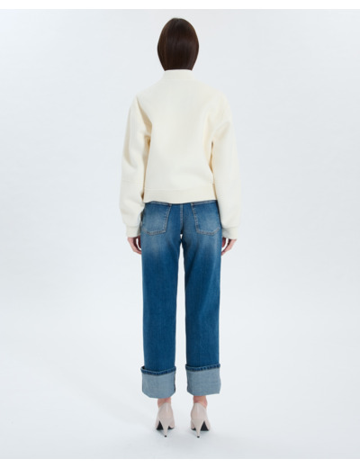 Adoptez l’élégance contemporaine avec ce manteau court double face écru, une pièce incontournable pour dynamiser votre garde-robe printanière. Son style bomber revisité allie audace et sophistication.